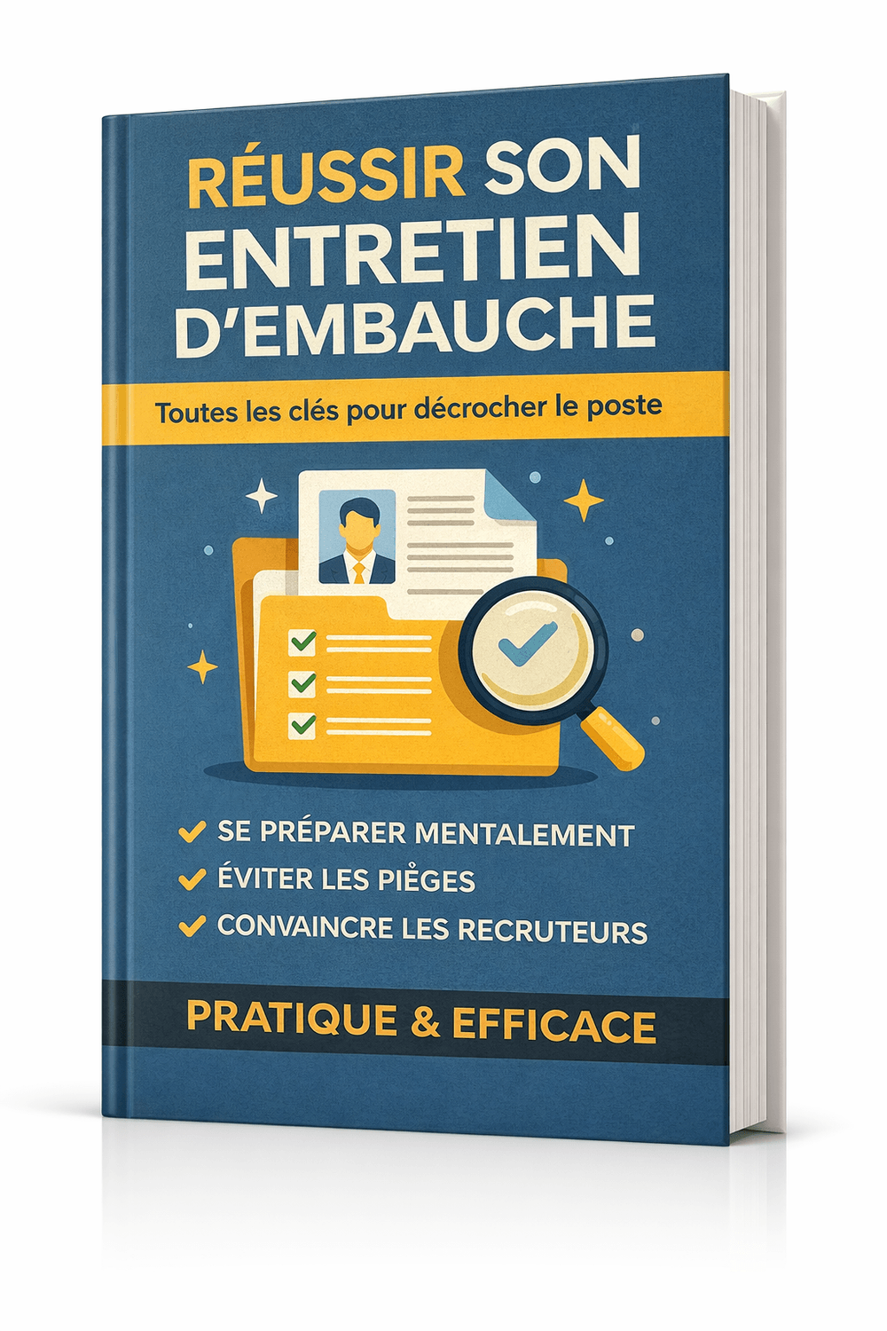 Cet e-book vous guide pas à pas, avant, pendant et après l’entretien. Vous saurez exactement comment vous préparer mentalement, comment vous présenter, quoi dire… et surtout quoi éviter. Fini l’improvisation et le doute : vous arrivez confiant, structuré et prêt à convaincre.